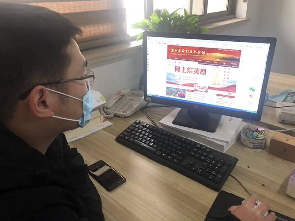 全體黨員佩戴黨徽,在各自辦公室,開啟云祭掃儀式。黨員們登陸“溫州革命烈士紀(jì)念館”網(wǎng)站,進(jìn)入“江心嶼烈士紀(jì)念碑公共祭掃”頁(yè)面,向烈士紀(jì)念碑默哀鞠躬,敬獻(xiàn)鮮花,寫下留言。