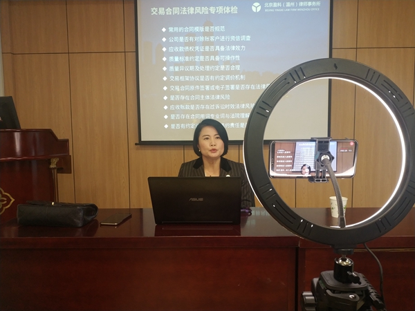 此次活動特邀溫州市十佳律師、溫州市政府行政法規(guī)合法性審查專家、盈科(溫州)管委會主任周春萍律師在溫州聯(lián)合產(chǎn)權(quán)交易中心進行現(xiàn)場直播,本次直播面向溫州地區(qū)區(qū)域資本市場培育企業(yè)進行公司法律風險防范知識分享。