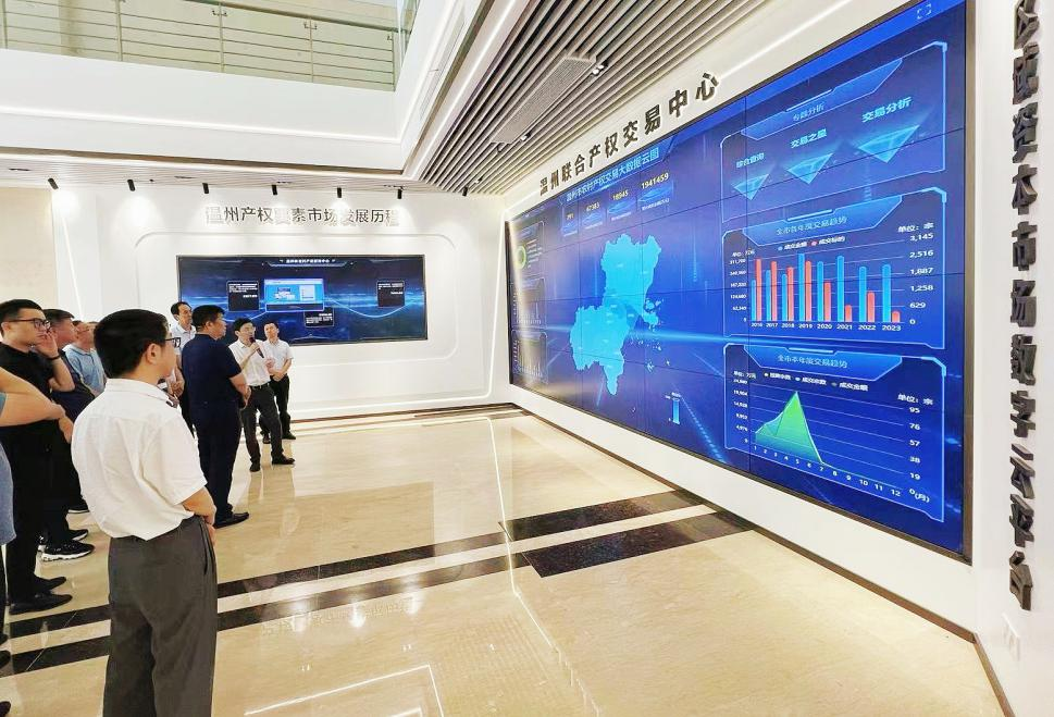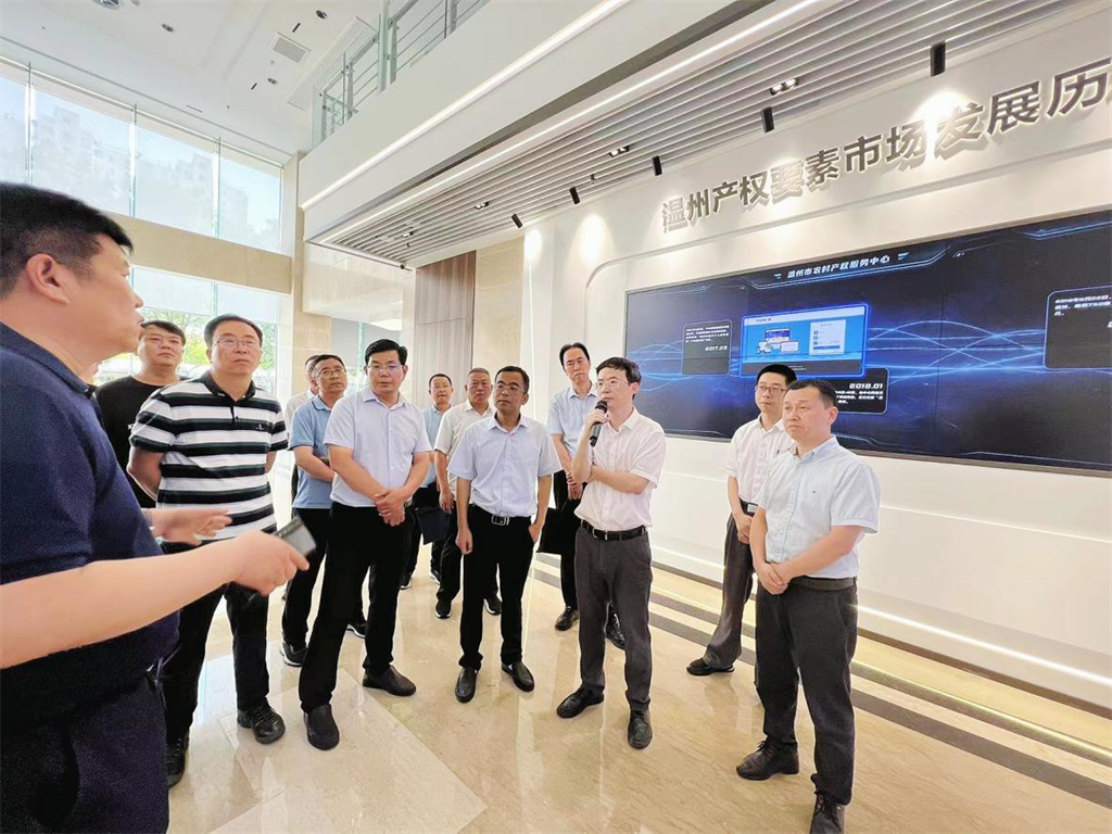 考察團(tuán)一行參觀了我中心“一站式”產(chǎn)權(quán)要素交易服務(wù)客廳,公司董事長(zhǎng)應(yīng)建敬現(xiàn)場(chǎng)講解服務(wù)客廳內(nèi)溫州產(chǎn)權(quán)要素市場(chǎng)發(fā)展歷程、溫州區(qū)域資本市場(chǎng)數(shù)字云平及業(yè)務(wù)服務(wù)長(zhǎng)廊,向考察團(tuán)詳細(xì)介紹了我中心農(nóng)村產(chǎn)權(quán)交易云平臺(tái)建設(shè)及農(nóng)村產(chǎn)權(quán)交易規(guī)范化工作。