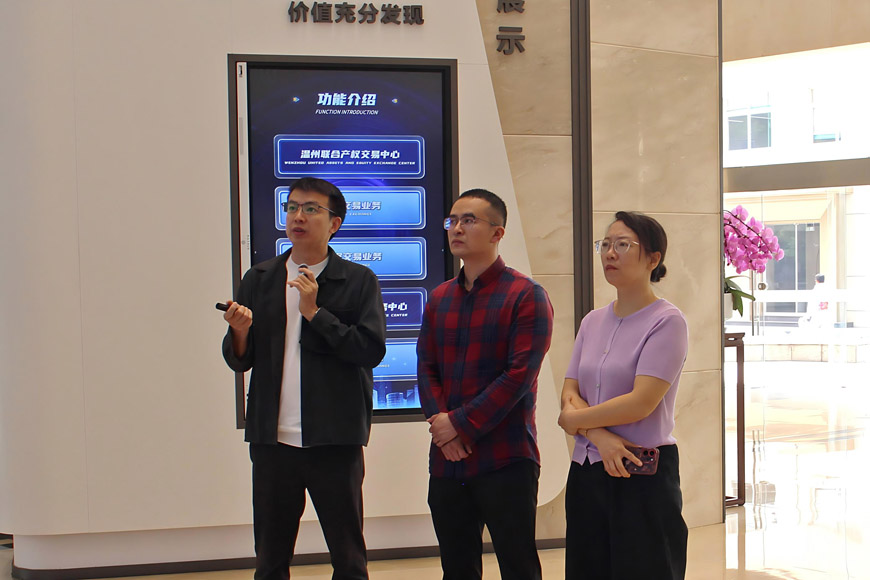 金明一行首先參觀了溫州聯(lián)交中心產(chǎn)權(quán)交易服務(wù)客廳、業(yè)務(wù)駕駛艙及陽(yáng)光采購(gòu)服務(wù)平臺(tái),詳細(xì)了解公司發(fā)展歷程、制度流程建設(shè)及數(shù)據(jù)化運(yùn)營(yíng)情況。