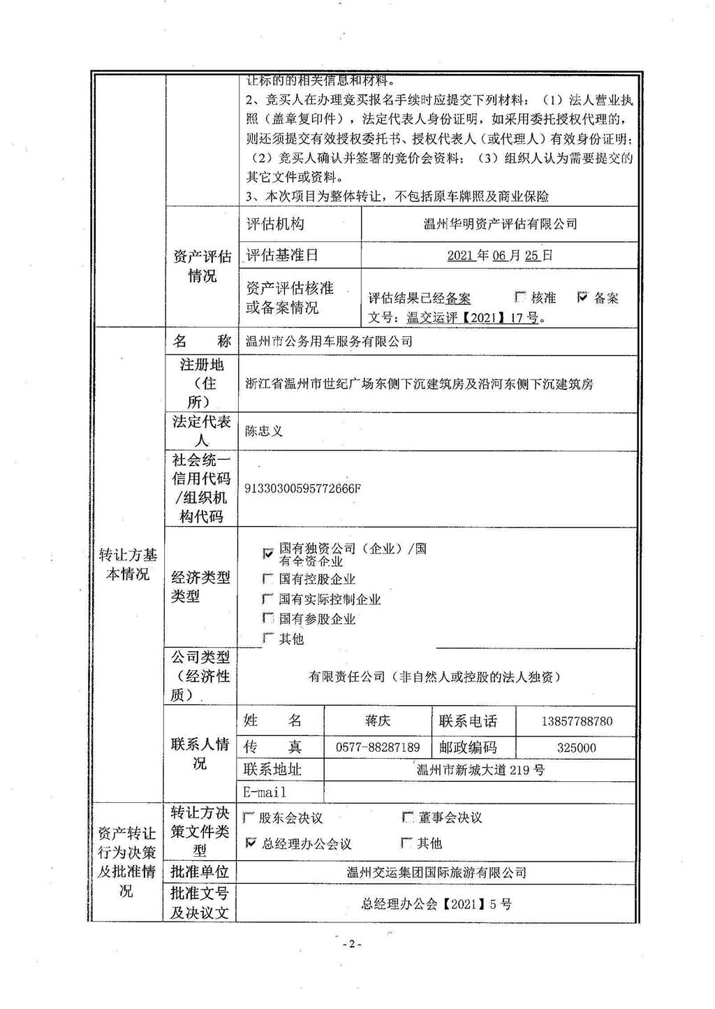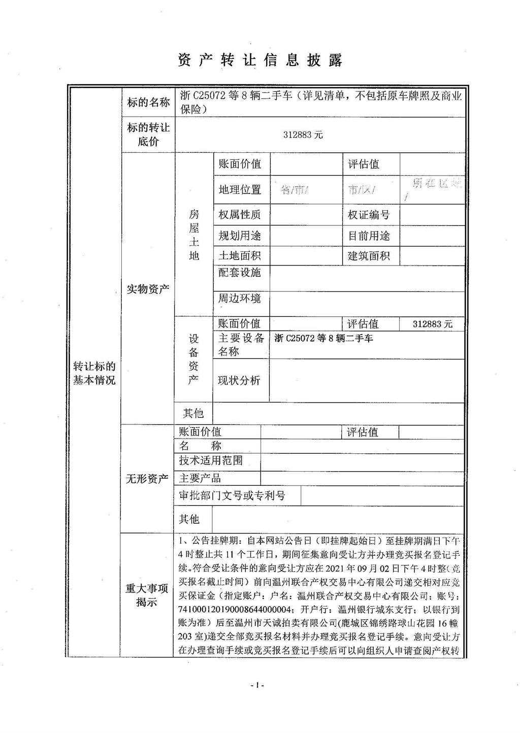 浙C25072等8輛二手車轉(zhuǎn)讓項目信息披露